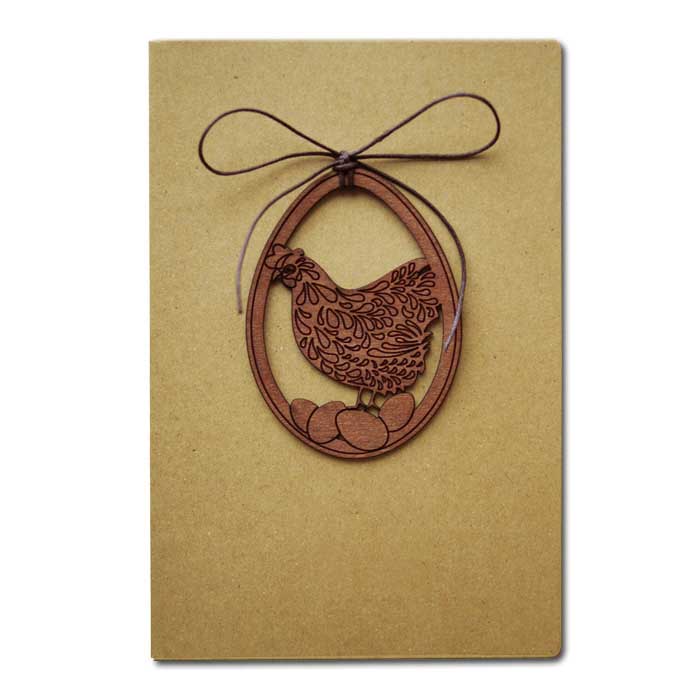 Kartka Wielkanocna w stylu EKO - Drewniana Kura Kartki bez nadruku życzeń