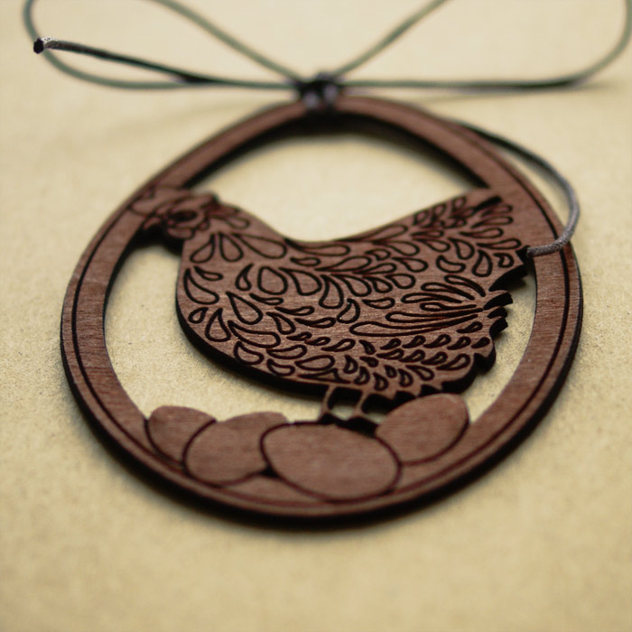 • dekoracja: drewniana aplikacja - kura w ozdobnej ramce